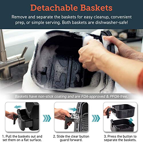 Removable nonstick coated basket are dishwasher safe, PFOA-free & BPA-free. Product Dimension: 11. 8*11. 8*12. 6 in; Basket Dimension: 9*9*3. 75 in. Buy our original air fryer accessory (search for: C158-6AC) to create more!