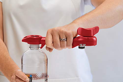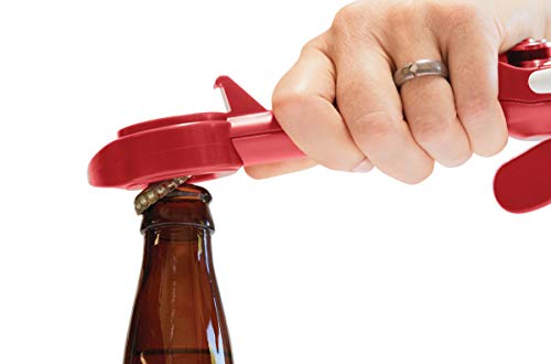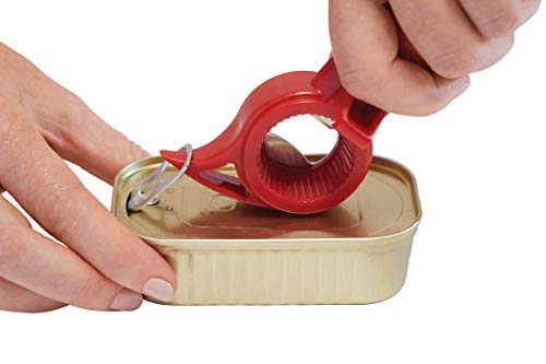 With a longer handle for better hold this lid lifter has five opening tools in One. Opens cans, ring-pulls, fizzy drink pull-tabs, metal crown tops and screw bottle tops.